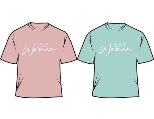 Two color options: heather turquoise and desert pink. Cost is $15/shirt.